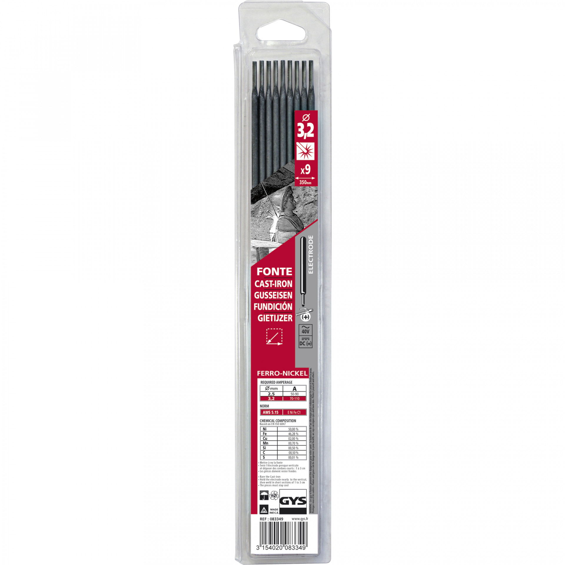 GYS FONTE öntvény hegesztő elektróda, 3.2 mm, 9 szál/csomag
