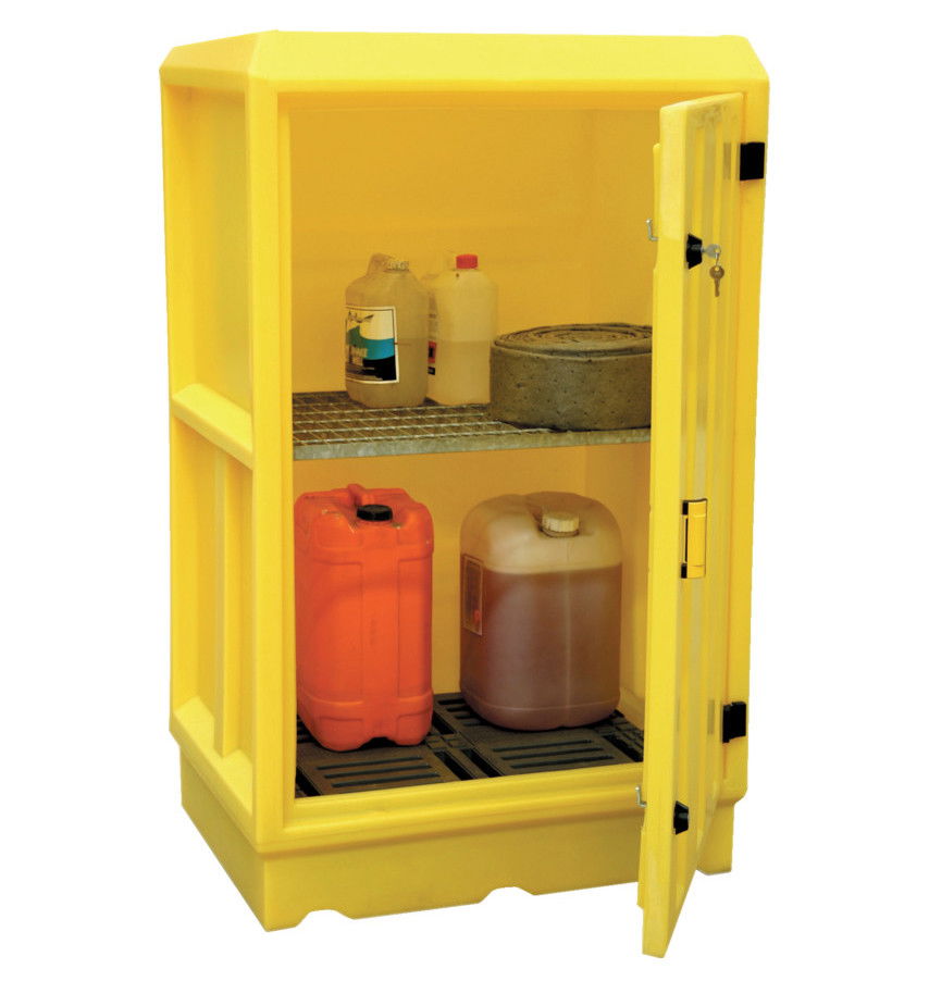 • Zárható műanyag tárolószekrény polcokkal.